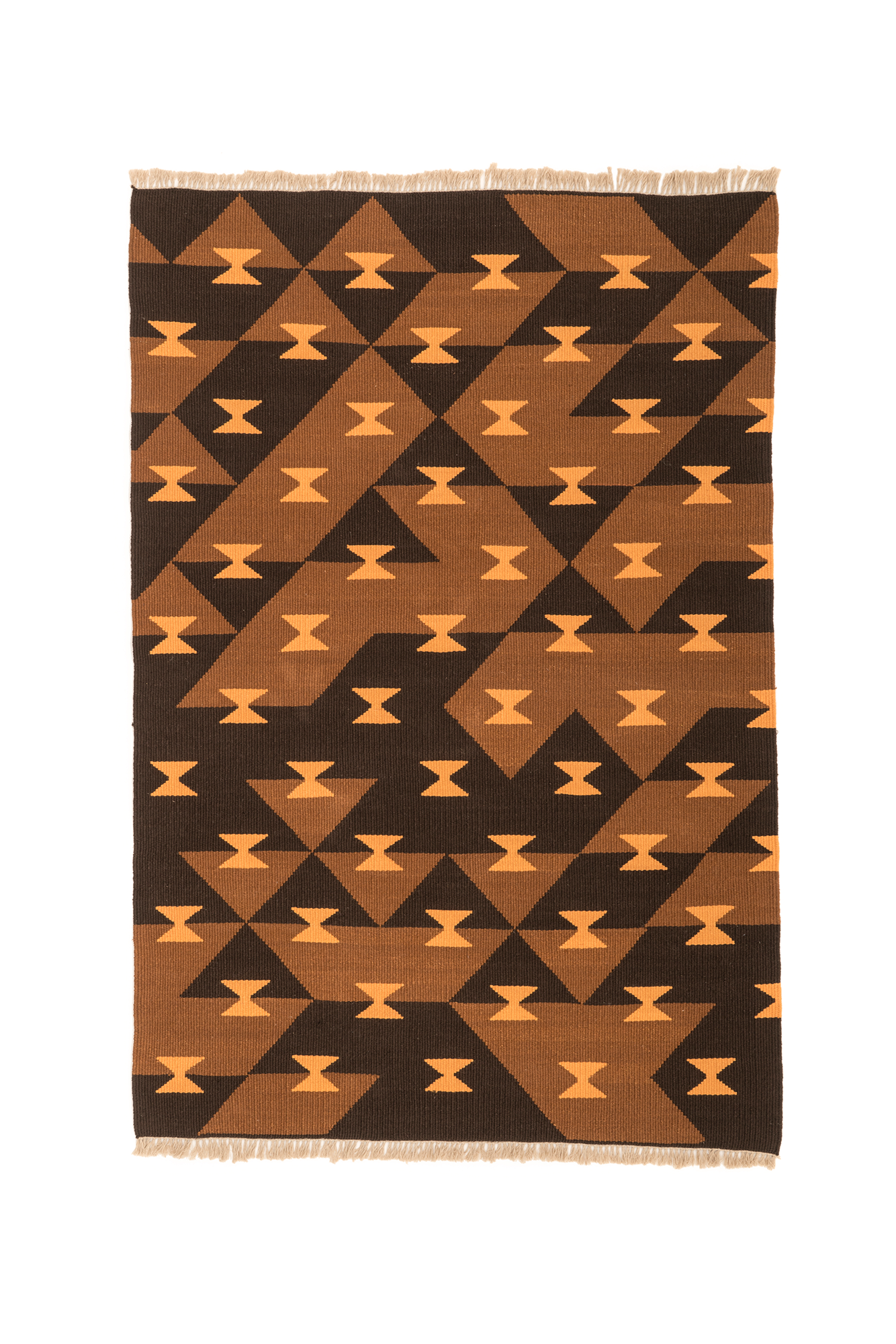 "Game Board" Handwoven Hemp Designer Rug in Shades of Brown