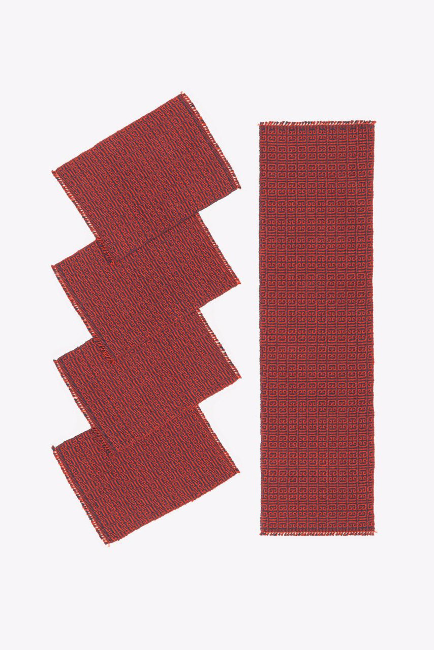 "Goat Horns" Handwoven Hemp Placemat & Table Runner Set