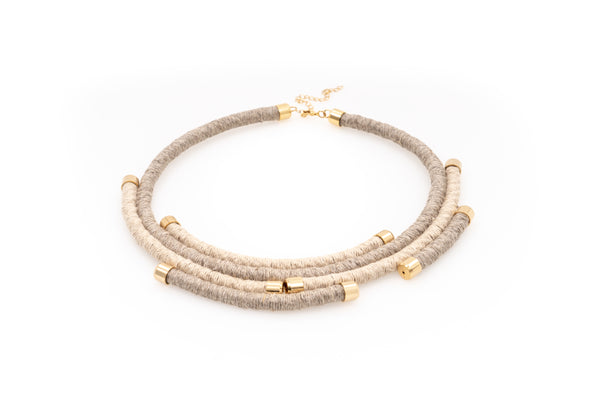 Fiber Art Jewelry Hemp Wrapped Choker Necklace in Natural Shades. Each item of Hemp Bouquet handmade hemp jewelry is individually created using natural hemp yarn. All of the fittings are gold-plated or antiqued patina plated and the magnetic closures are attractive,...